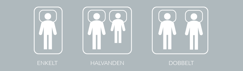 Bredden afhænger af, hvor mange personer der skal kunne ligge i sengen, altså om det skal være en enkeltmandsseng, en halvandenmandsseng eller en dobbeltseng.