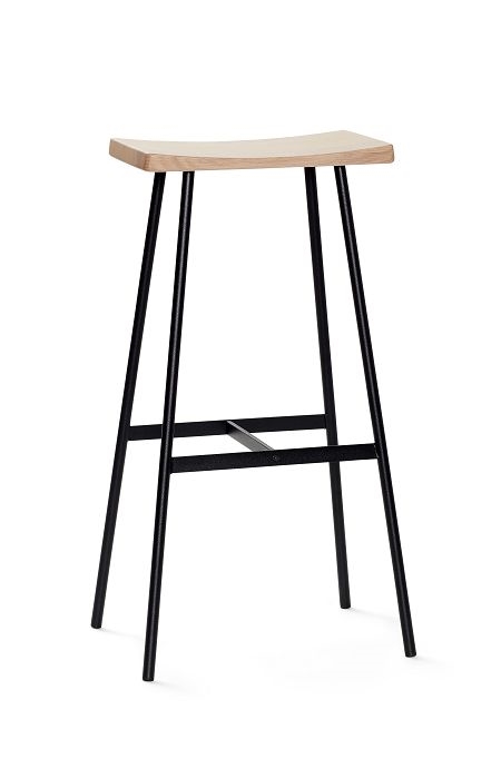 En barstol med kant og karakter fra Andersen Furniture. Denne model er med et smukt sæde i naturfarvet, massiv egetræ og med et stel i sort stål. Der er monteret vinklede dupsko på alle ben til at skabe optimal stabilitet.
