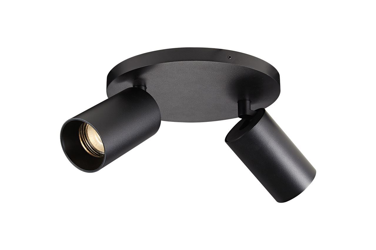 SpotOn Circle2 fra ANTIDARK er en stilren, elegant og praktisk spotlampe med mange anvendelsesmuligheder. To spot er monteret på en rund base og kan drejes og vinkles efter behov. SpotOn kan både bruges som væglampe og loftlampe, hvor dan for eksempel kan bruges som sengelampe, som belysning over bryggersbordet eller på væggen for at belyse en specifik del af væggen eller loftet. Til lampen medfølger 2 guld frontringe, så du nemt kan forny udseende på din spotlampe. Lampen har 2x GU10 fatning, lyskilder medfølger ikke.