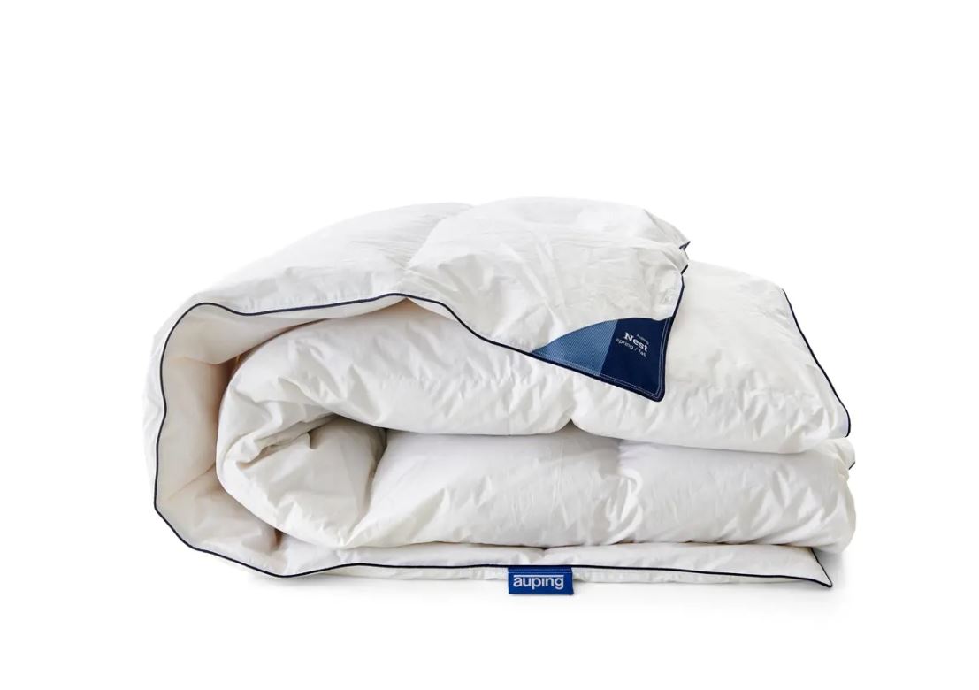 Nest dynen fra Auping er fyldt med 90% genanvendte dun og 10% genanvendte småfjer i høj kvalitet, hvilket betyder at dynen isolerer og ånder optimalt. Dynes føles utroligt let og er nem at ånde i. De genanvendte dun kommer fra dundyner og puder i høj kvalitet, men som forbrugere har valgt at kassere. Efter nøje udvælgelse, rensning og tørring er disse dun mindst lige så rene som helt nye dun. Efter forarbejdningsprocessen bliver kvaliteten og renheden af de genanvendte dun kontrolleret af det uafhængige laboratorium IDFL (International Down and Feather Testing Laboratoy)