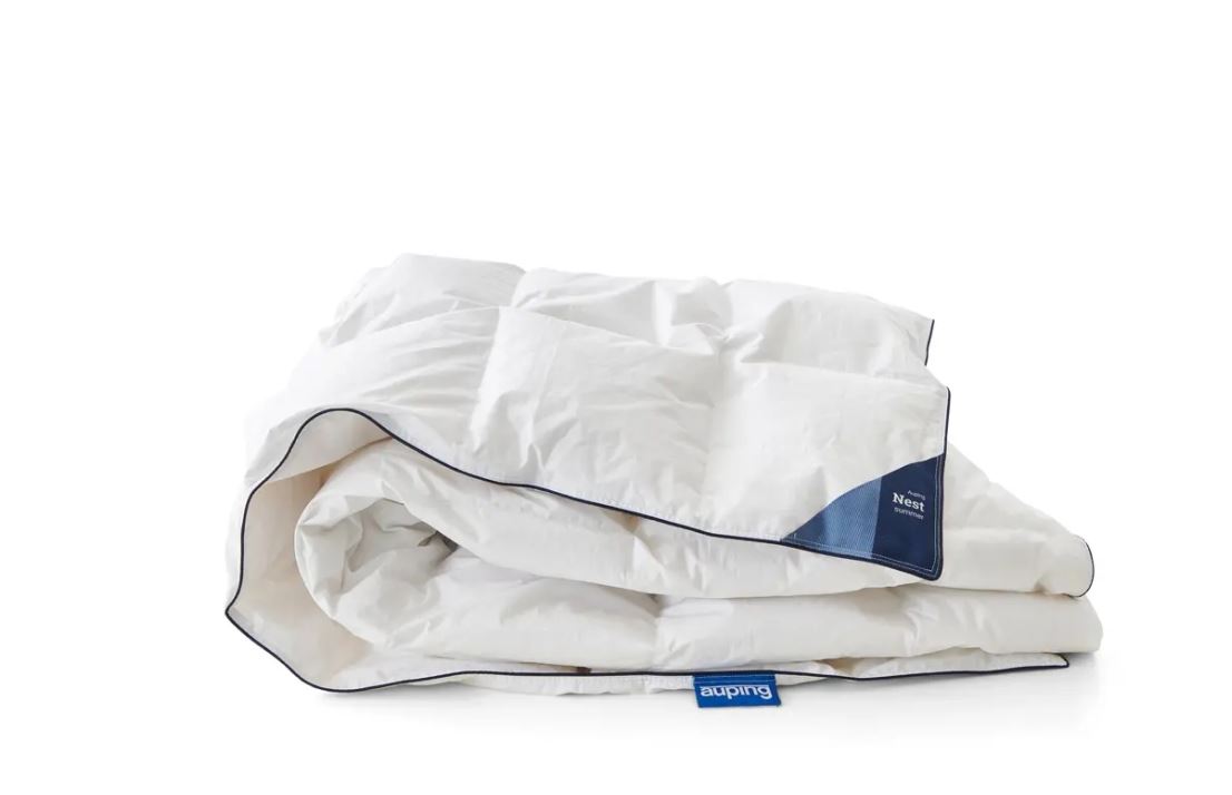 Nest dynen fra Auping er fyldt med 90% genanvendte dun og 10% genanvendte småfjer i høj kvalitet, hvilket betyder at dynen isolerer og ånder optimalt. Dynes føles utroligt let og er nem at ånde i. De genanvendte dun kommer fra dundyner og puder i høj kvalitet, men som forbrugere har valgt at kassere. Efter nøje udvælgelse, rensning og tørring er disse dun mindst lige så rene som helt nye dun. Efter forarbejdningsprocessen bliver kvaliteten og renheden af de genanvendte dun kontrolleret af det uafhængige laboratorium IDFL (International Down and Feather Testing Laboratoy)