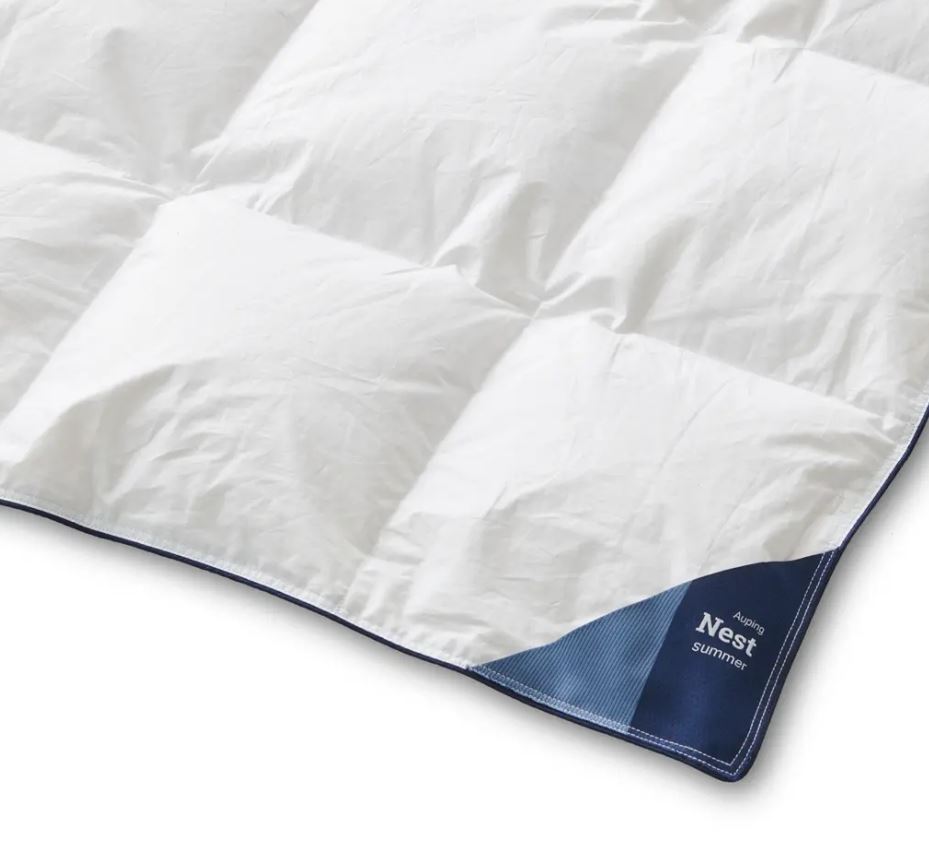 Nest dynen fra Auping er fyldt med 90% genanvendte dun og 10% genanvendte småfjer i høj kvalitet, hvilket betyder at dynen isolerer og ånder optimalt. Dynes føles utroligt let og er nem at ånde i. De genanvendte dun kommer fra dundyner og puder i høj kvalitet, men som forbrugere har valgt at kassere. Efter nøje udvælgelse, rensning og tørring er disse dun mindst lige så rene som helt nye dun. Efter forarbejdningsprocessen bliver kvaliteten og renheden af de genanvendte dun kontrolleret af det uafhængige laboratorium IDFL (International Down and Feather Testing Laboratoy)