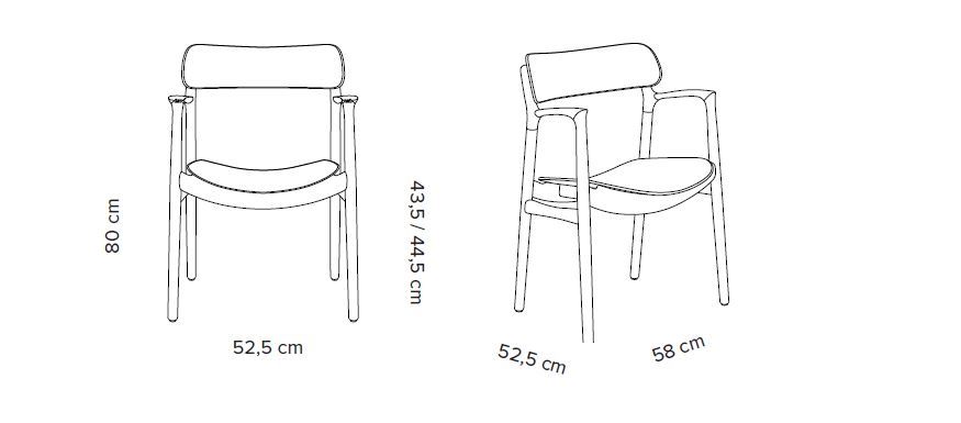 Sædehøjde med polstring : 44,5 cm