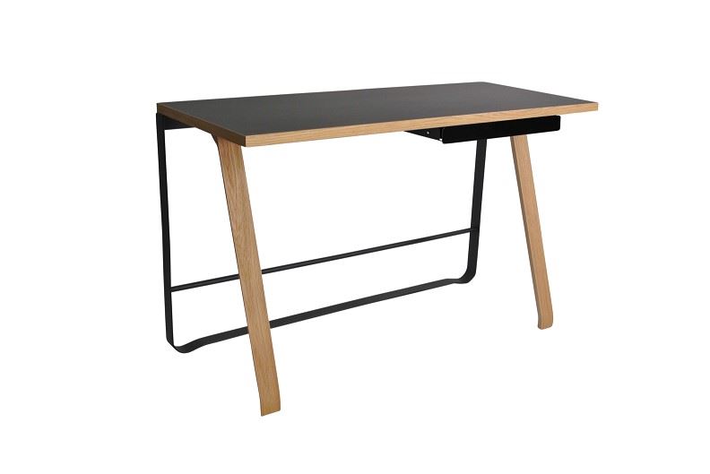 Ben i matlakeret egetræ og sort pulverlakeret stål.