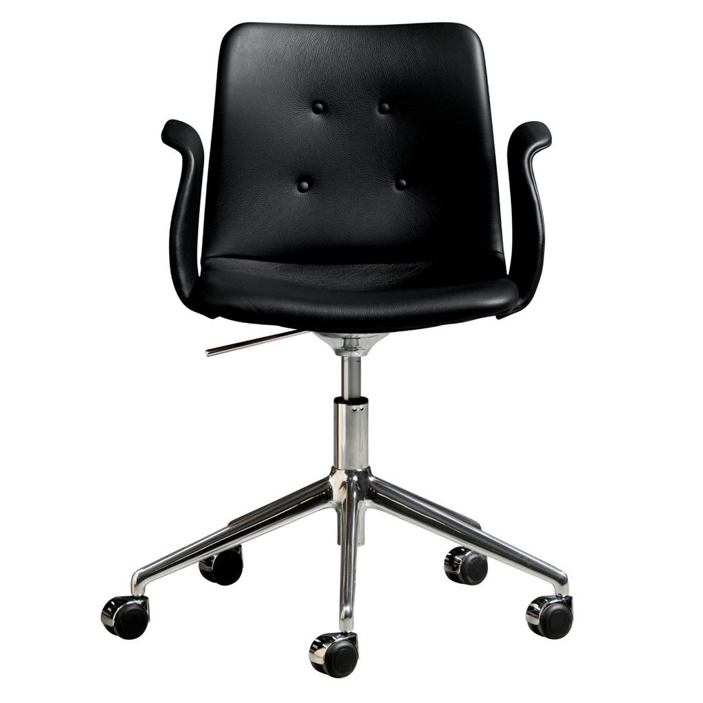 Bent Hansen Primum Armstol Højdejusterbar m. Drejestel+Hjul - Zenzo 3 207 Sort Læder/Metalben