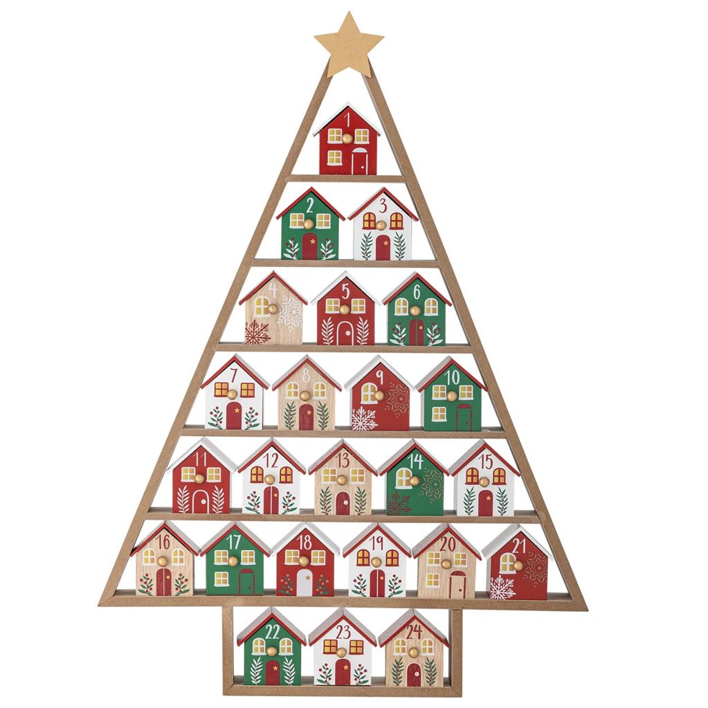 Calvin-kalenderen fra Bloomingville skaber en hyggelig og stemningsfuld nedtælling til juleaften. Den charmerende kalender, formet som et juletræ, er lavet af træ og dekoreret med små, farverige huse, der hver markerer en decemberdag frem til den 24. Med plads til små gaver eller overraskelser i hvert rum kan den hurtigt blive en fast del af juletraditionerne og bringe glæde for både børn og voksne.