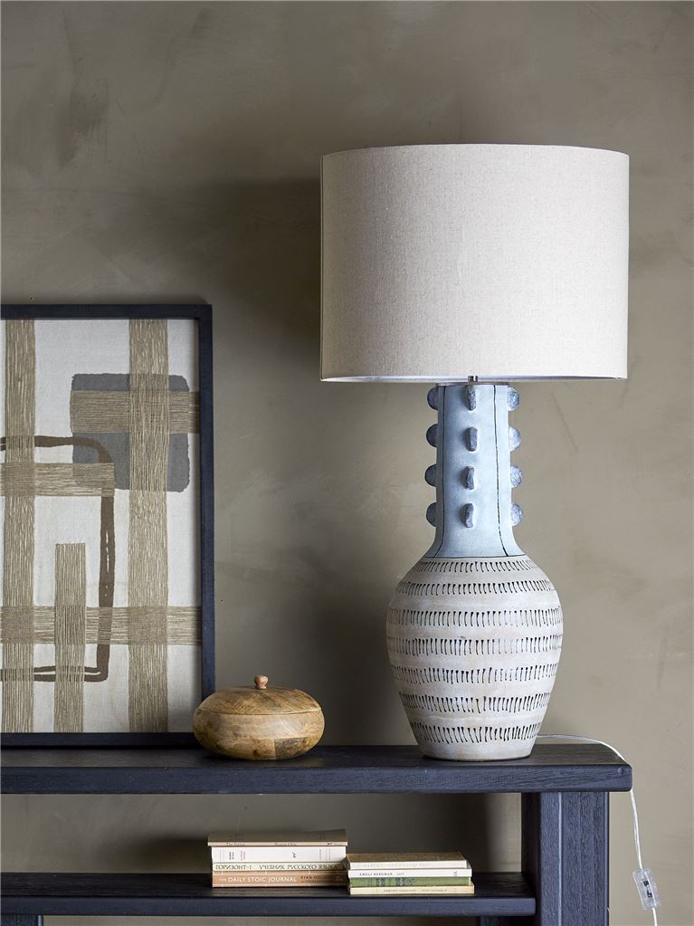 Gadiela Gulvlampen fra Bloomingville er en stilfuld og iøjnefaldende lampe, der bringer lys og liv til ethvert rum. Den har en base med et håndmalet mønster i en delikat blå glasur, som skaber en beroligende atmosfære. De indgraverede grafiske detaljer giver lampen et kunstnerisk og skulpturelt udtryk, hvilket gør den ideel til stuen eller et hyggeligt hjørne i soveværelset.