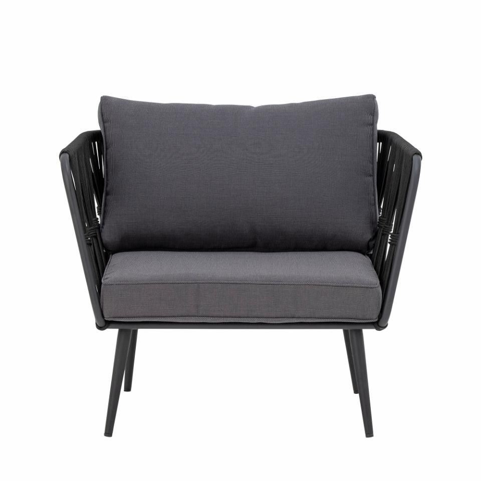 Pavone Loungestol fra Bloomingville er et perfekt valg til haven. Stolen har et nordisk og enkelt udtryk. Stellet er lavet af pulverlakeret sort metal og sædet er sort håndvævet polyesterreb. Der medfølger en mørkegrå hynde med stof lavet af polyester, som øger komforten. Havestolen skaber en hyggeligt stemning og for at beskytte stoffet bedst muligt - undgå direkte sollys for at forlænge farvens holdbarhed.