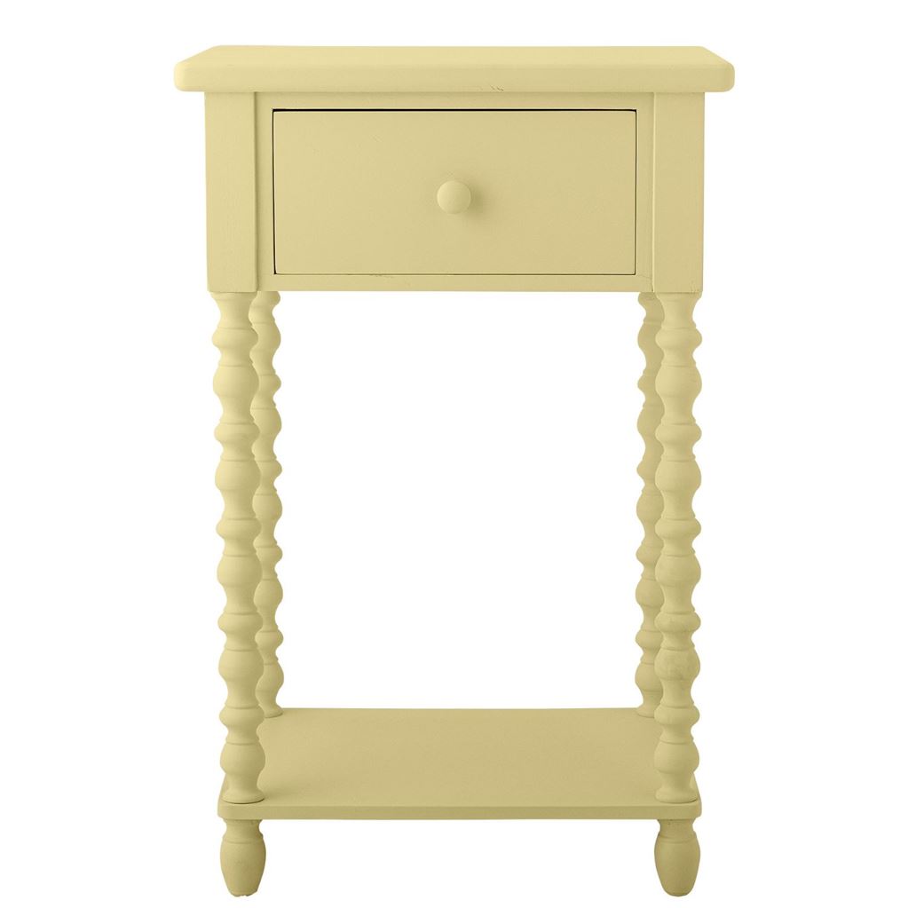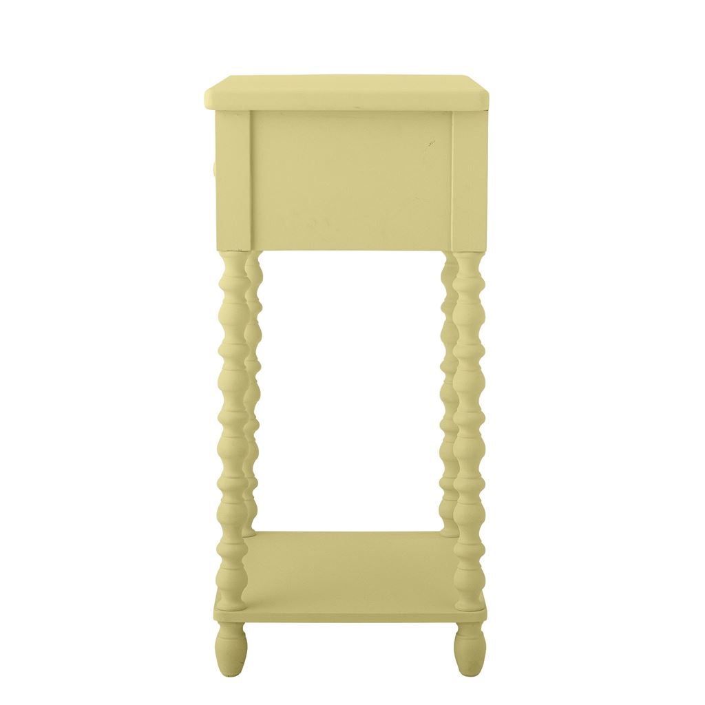 Salino Sidebord fra Bloomingville er et elegant og alsidigt møbel, der komplementerer ethvert rum. Det er fremstillet af fyrretræ og har en smuk pastelgul nuance, der tilføjer varme og charme. Bordet er udstyret med en praktisk skuffe, mens den glatte overflade og de fine detaljer på benene giver det et sofistikeret udtryk. Perfekt som natbord i soveværelset, et funktionelt møbel i børneværelset eller som et dekorativt element i stuen.