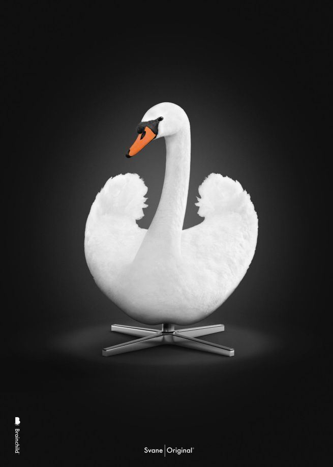 Brainchild tager ordene helt bogstaveligt og følger de danske designklassikere tilbage til originalen – tilbage til de ord, der inspirerede formgivningen. Brainchild har designet den fineste plakat med Hvid Svane med sort baggrund.
