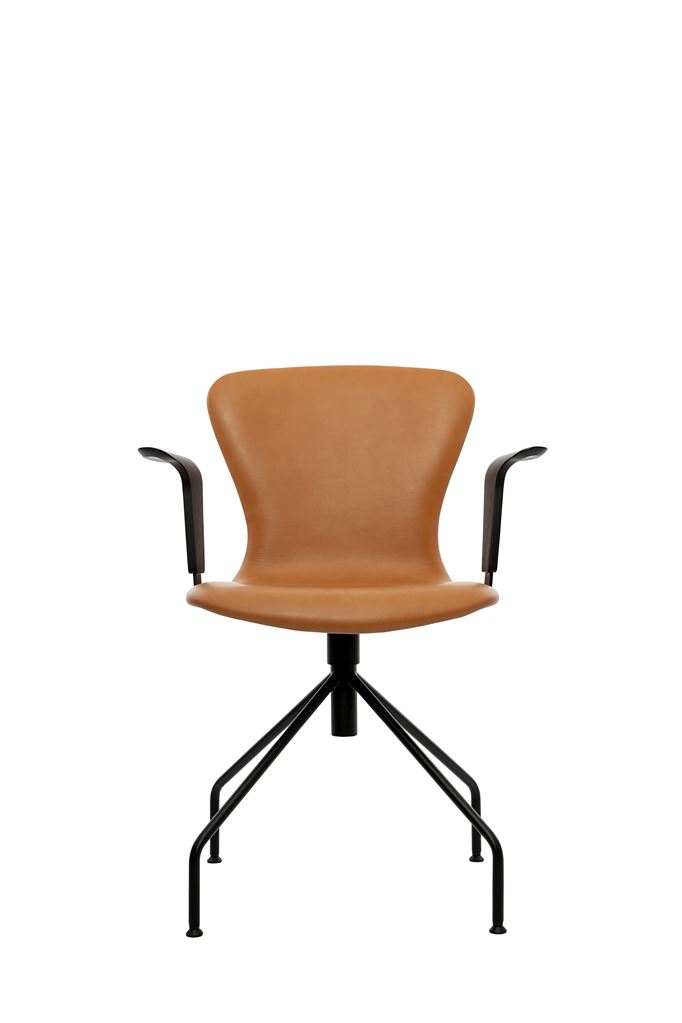 Skøn spisebordsstol fra Bruunmunch. Med denne stol får du en moderne spisebordsstol, som har et klassisk og tidløst præg, hvilket gør at den passer til de fleste omgivelser. Play stolens bløde former danner et let og indbydende udtryk, som på samme tid understreger klassisk design på bedste vis. Det skønne læder og stellet af lakeret stål er i perfekt harmoni med hinanden. Skab kontrast i din spisestue med denne unikke stol, som vil være en særdeles fin tilføjelse til ethvert hjem. Stolen kan naturligvis også bruges som en kontorstol. Stolen har et drejbart stel i sortlakeret aluminium, hvilket gør at den er nem at bevæge sig i og flytte rundt på.