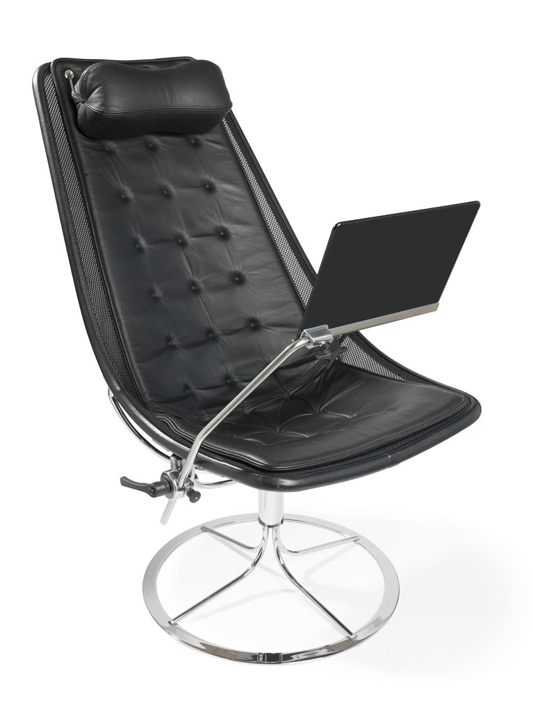Bruno Mathsson Mi 466 Jetson 66 Lænestol inkl. Læsebord - Sort Læder/Forkromet Stål