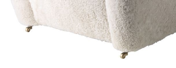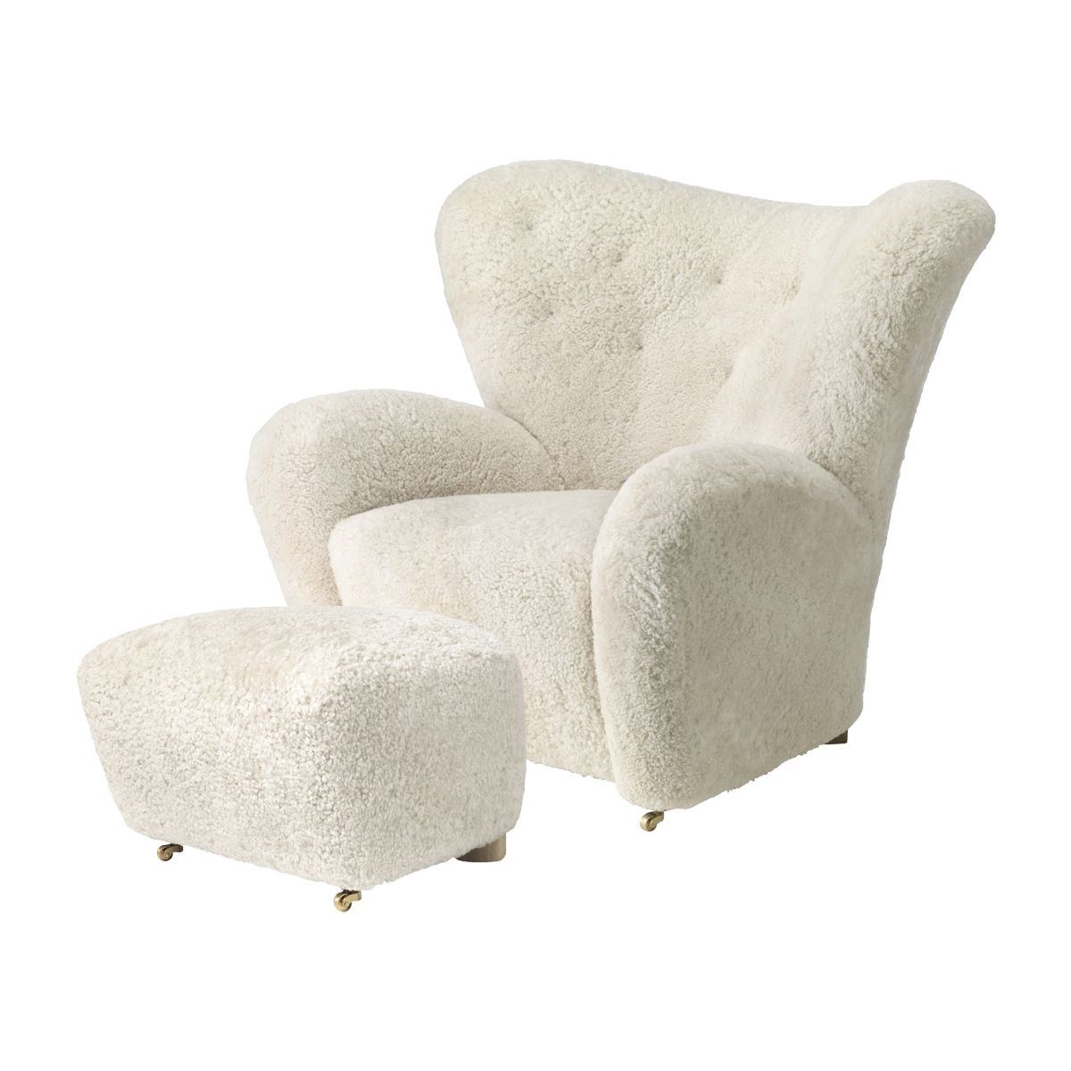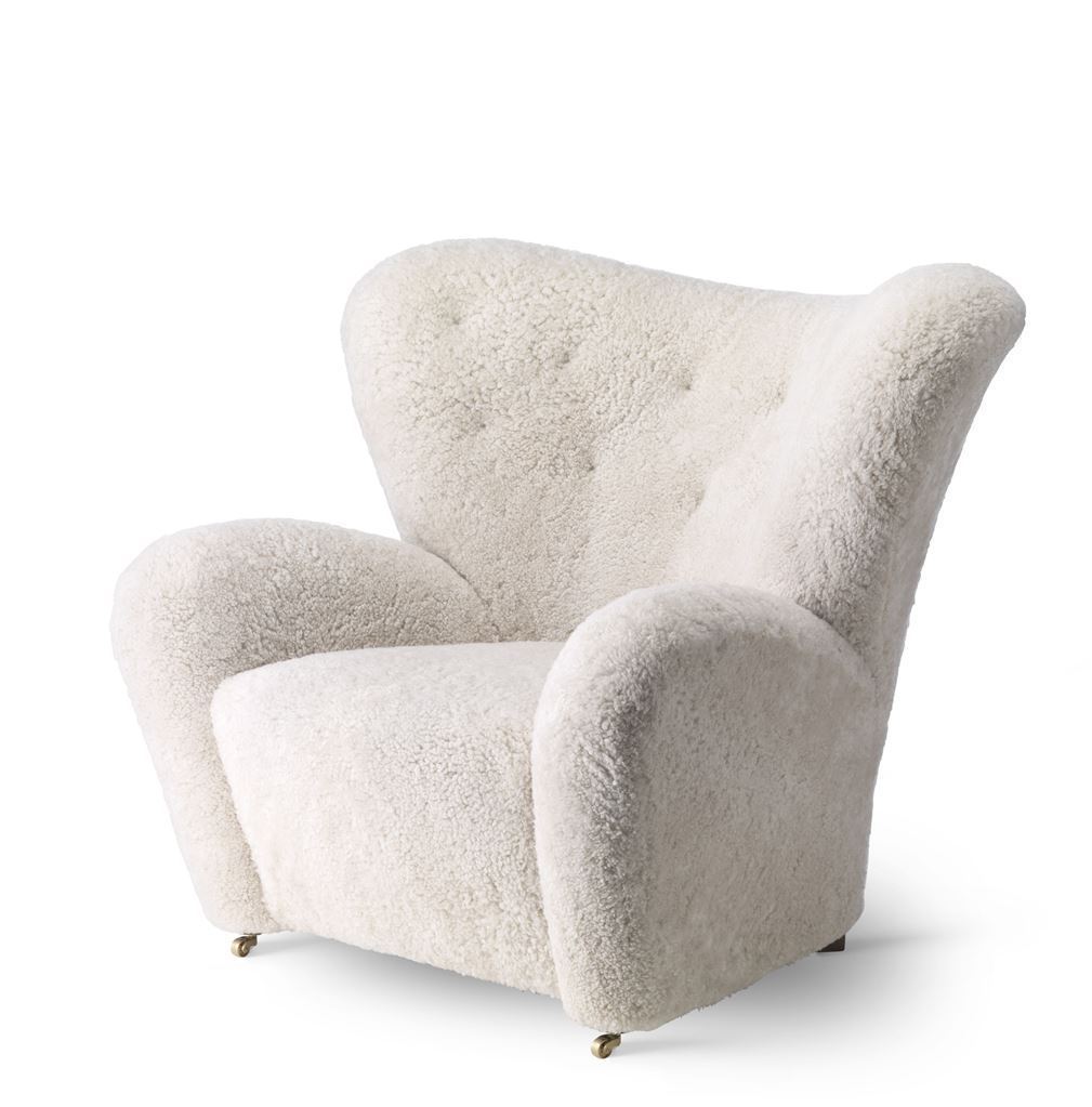 Polstret lænestol "Den Trætte Mand" designet af Flemming Lassen i 1935. Lænestolen er polsret med lammeskind og kommer i en flot lys Moonlight farve. Lænestolens ben er i røget eg, og de to forreste ben har et par praktiske hjul, så lænestolen er nem at flytte rundt på. Stolen udskiller sig ved dens bjørne-agtige form og det omfangsrige armlæn, som sørger for at siddekomforten er i top. At sidde i stolen, skal ifølge Flemming Lassen være '' Lige så varm og sikker som en isbjørneunge i sin mors favn, midt på iskappen.'' I stolen kan du sidde godt tilpas og læse din avis, hygge med strikketøjet, læse højt for børn eller børnebørn - eller du kan slænge benene over armlænet til en god film, og det naturlige lammeskind er let at rengøre og vedligeholde. Lænestolen har en sædehøjde på 35 cm, og en tilhørende skammel til at fuldende oplevelsen medfølger.