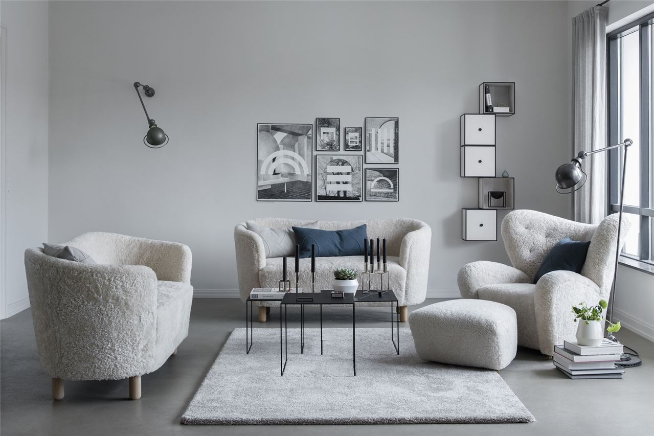 Audo Den Trætte Mand Lænestol inkl. Skammel , Lammeskind - Moonlight/Smoked Oak