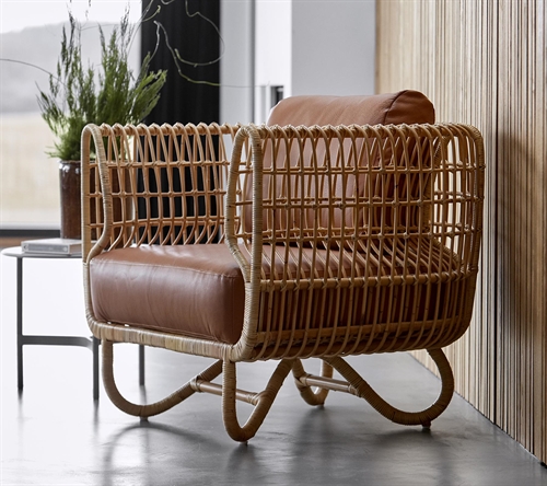 Cane-line Nest Loungestol Indoor - Natural Rattan/Cognac Leather