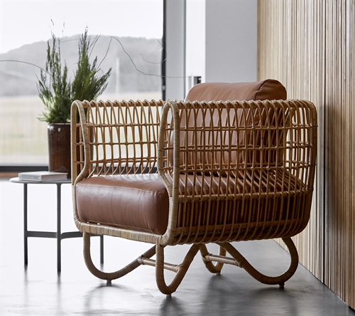 Cane-line Indoor Nest Loungestol SH: 40 cm - Natural Rattan/Cognac Leather
