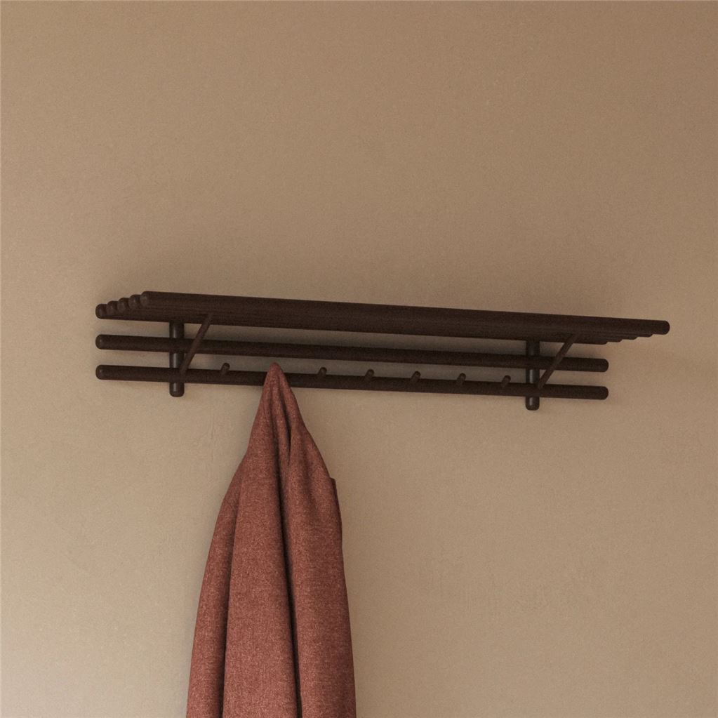Sticks Knagerække med Hattehylde er en funktionel og stilfuld tilføjelse til hjemmets indretning. Den er udført i mahogni, hvor den dybe, mørke finish tilfører rummet et eksklusivt og elegant udtryk. Det pinde-inspirerede design giver rigelig plads til jakker og accessories, mens den indbyggede hattehylde skaber ekstra opbevaring til hatte, æsker eller dekorative genstande.