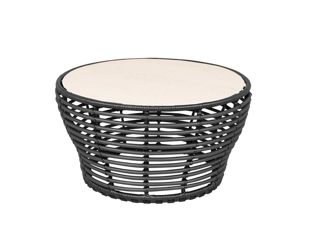 Cane-line Outdoor Basket Sofabord Mellem Ø: 75 cm - Travertine Look Ceramic/Graphite Weave