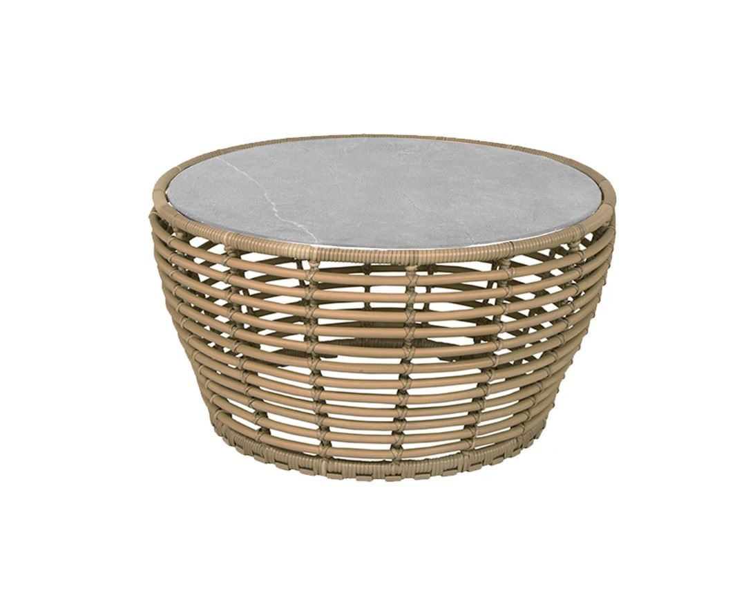 Cane-line Outdoor Basket Sofabord Mellem Ø: 75 cm - Fossil Grey Ceramic/Natural Weave
