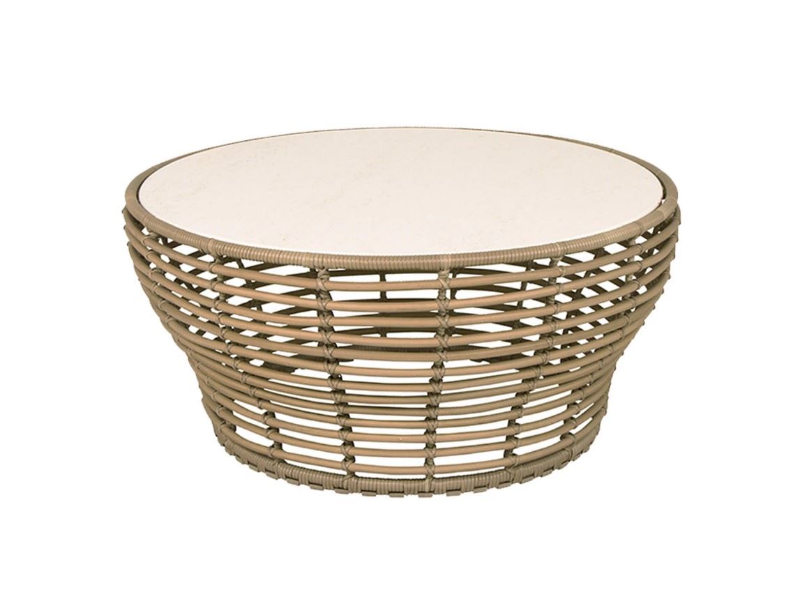 Cane-line Outdoor Basket Sofabord Stor Ø: 95 cm - Travertine Look Ceramic/Natural Weave