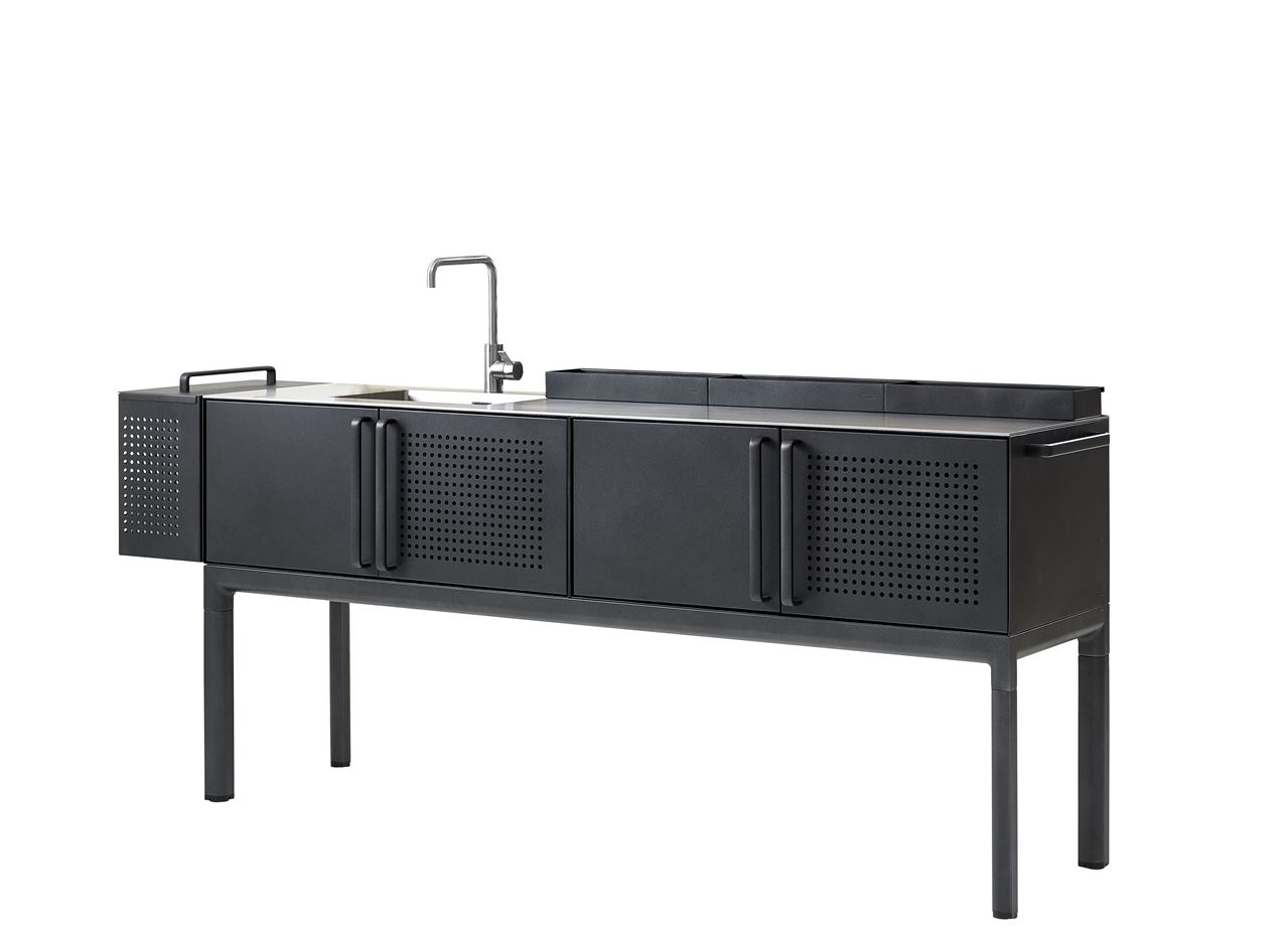 Cane-line Outdoor Drop Køkken Modul inkl. Håndvask og Armatur - Lava Grey/Aluminium