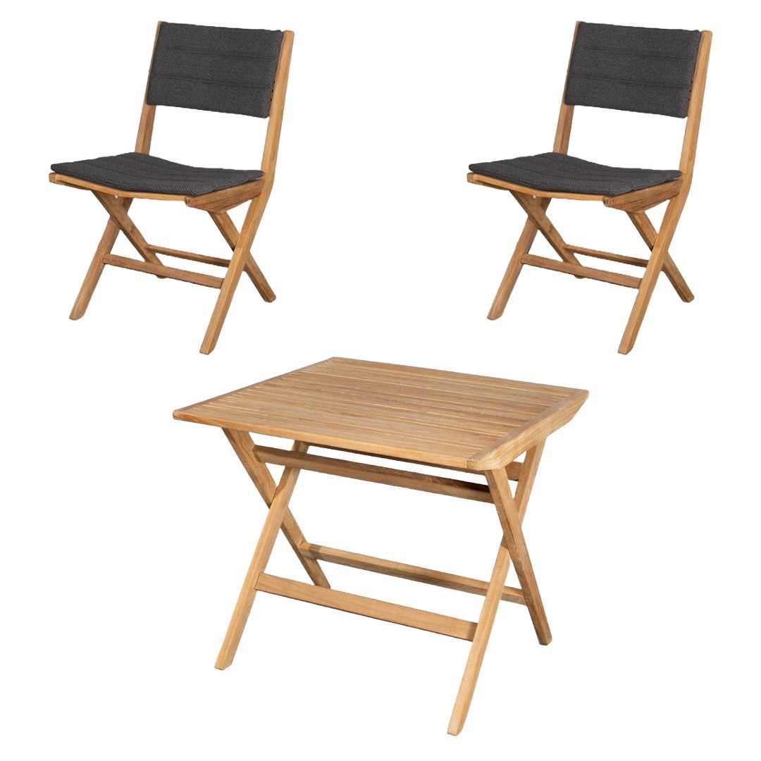 Cane-line Outdoor Flip Klapbord + Flip Foldestole inkl. Sæde- og Ryghynde Havemøbelsæt - Teak/Dark Grey