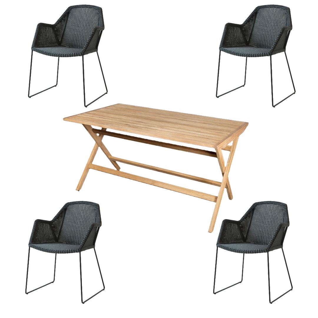 Cane-line Outdoor Flip Klapbord + Breeze Stole Havemøbelsæt - Natural Teak/Black