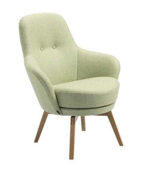 Den elegante Gaga lænestol har et understel i lakeret eg og sædet er betrukket med Evita møbelstof. Stolen har et tidløst og moderne design, og byder på en rigtig god siddekomfort. Stolens rene linjer og simple design gør det nemt at tilføje til indretningen. Stolen har en indbygget drejefunktion, som gør det muligt at dreje 360 grader rundt imens man sidder i den, og stolens rummelige sæde gør plads til, at du kan have en pude eller to i ryggen. Så sæt dig i stolen og slap af efter en lang dag, imens du nyder din yndlingsdrik.
