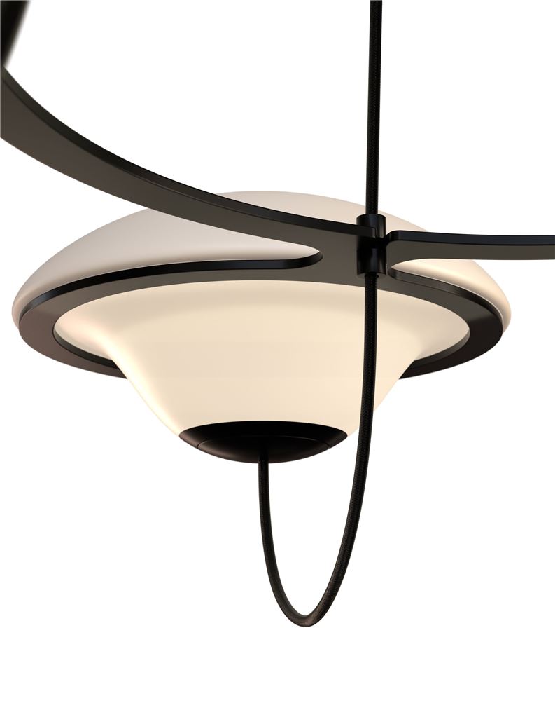 Elegant lysekronependel med tre lyskilder, der kombinerer moderne design og funktionalitet. Den sorte metalstruktur skaber et stilfuldt udtryk, mens de semi-ugennemsigtige, hvide glasopaliner tilfører et blødt og behageligt lys til rummet. Lysekronen er udstyret med E27 pærefatninger, som giver mulighed for at vælge pærer efter eget ønske, så lysets intensitet og farvetone kan tilpasses. Det sorte stofophængskabel bidrager til det raffinerede look og gør installationen nem og stabil. Denne lysekrone er en perfekt løsning til både spisebordet, stuen eller som et centralt element i entréen.