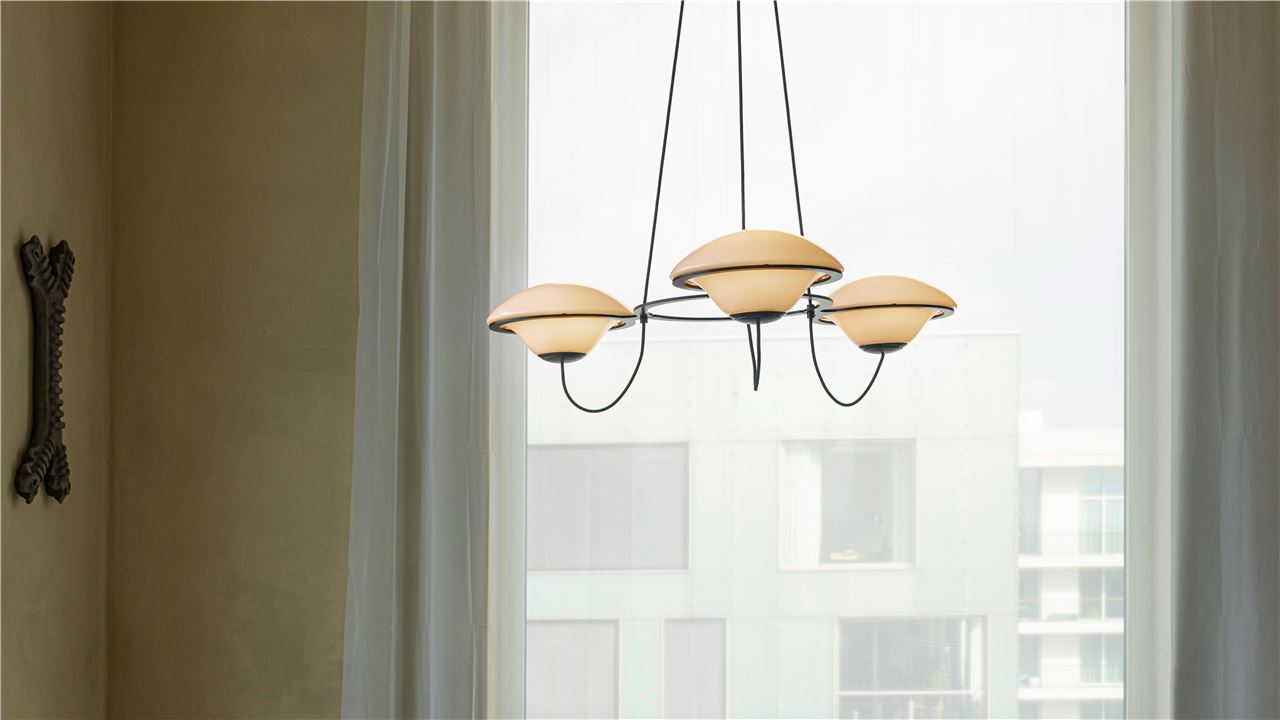Elegant lysekronependel med tre lyskilder, der kombinerer moderne design og funktionalitet. Den sorte metalstruktur skaber et stilfuldt udtryk, mens de semi-ug Se mere ...