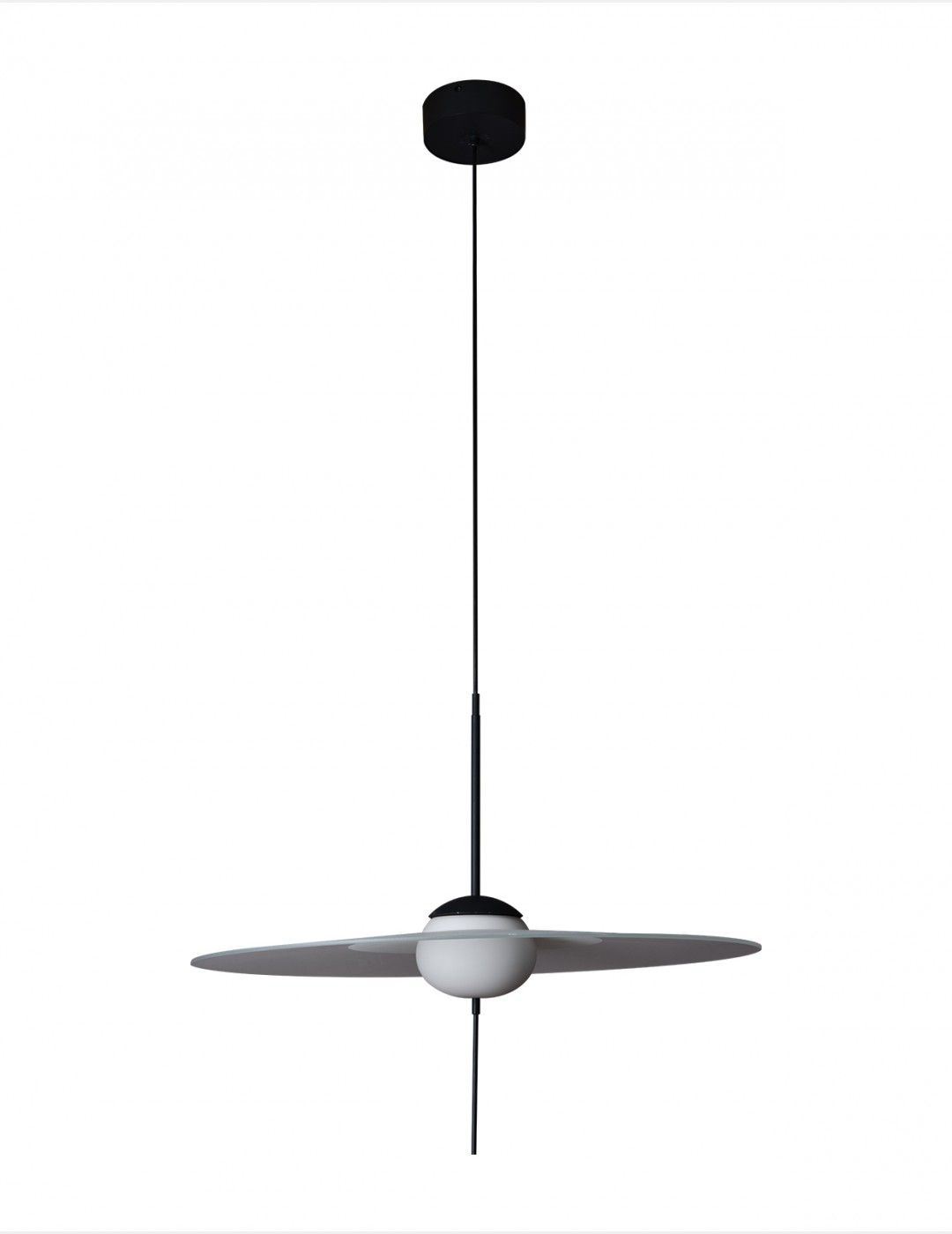 Elegant pendel fra DCW Editions. Den unikke Mono pendel har en justerbar skærm såvel som touch lysdæmper indbygget i lampens nederste stav, og du kan derfor tilpasse belysningen efter behov på praktisk vis. Med pendlens brede skærm fremstår Mono som et skulpturelt element i rummet, der skaber associationer til det komiske univers ved at ligne et rumskib eller en lille planet. Hæng pendlen i spisestuen over spisebordet, i stuen eller i soveværelset. Uanset placering vil den tilføre en smuk detalje til indretningen. Mono fås i tre størrelser, som kan kombineres eller anvendes for sig. Lampen har integreret LED lyskilde.