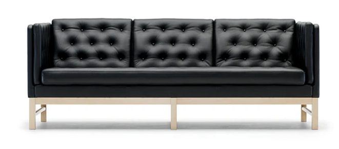 Fredericia Furniture Erik Jørgensen EJ 315-3 3 Pers. Sofa L: 210 cm - Sort Semianilin Læder/Sæbebehandlet Eg