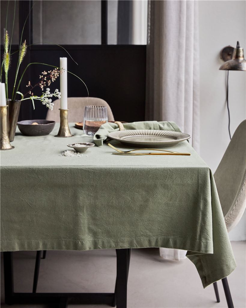 Dæk et smukt bord med denne dug, fremstillet af OEKO-TEX® 100-certificeret bomuld. Dugens rolige, neutrale grønne farve gør den ideel til både hverdag og fest. Se mere ...