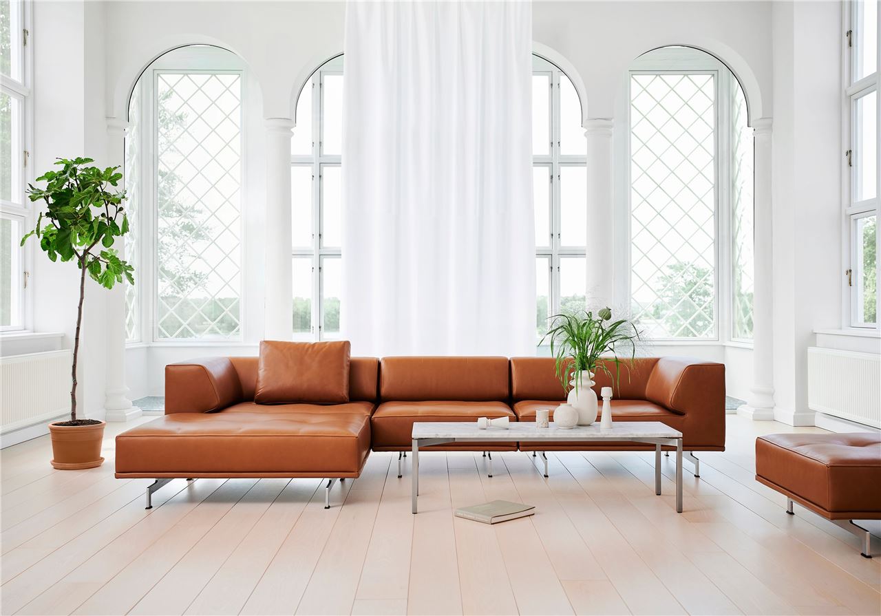 Fredericia Furniture Delphi Elements Sofa m. Chaiselong L: 325 cm - Cognac 95/Aluminium