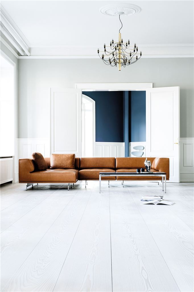 Til sofaen medfølger et modul der kan fungere som chaiselong eller som puf.