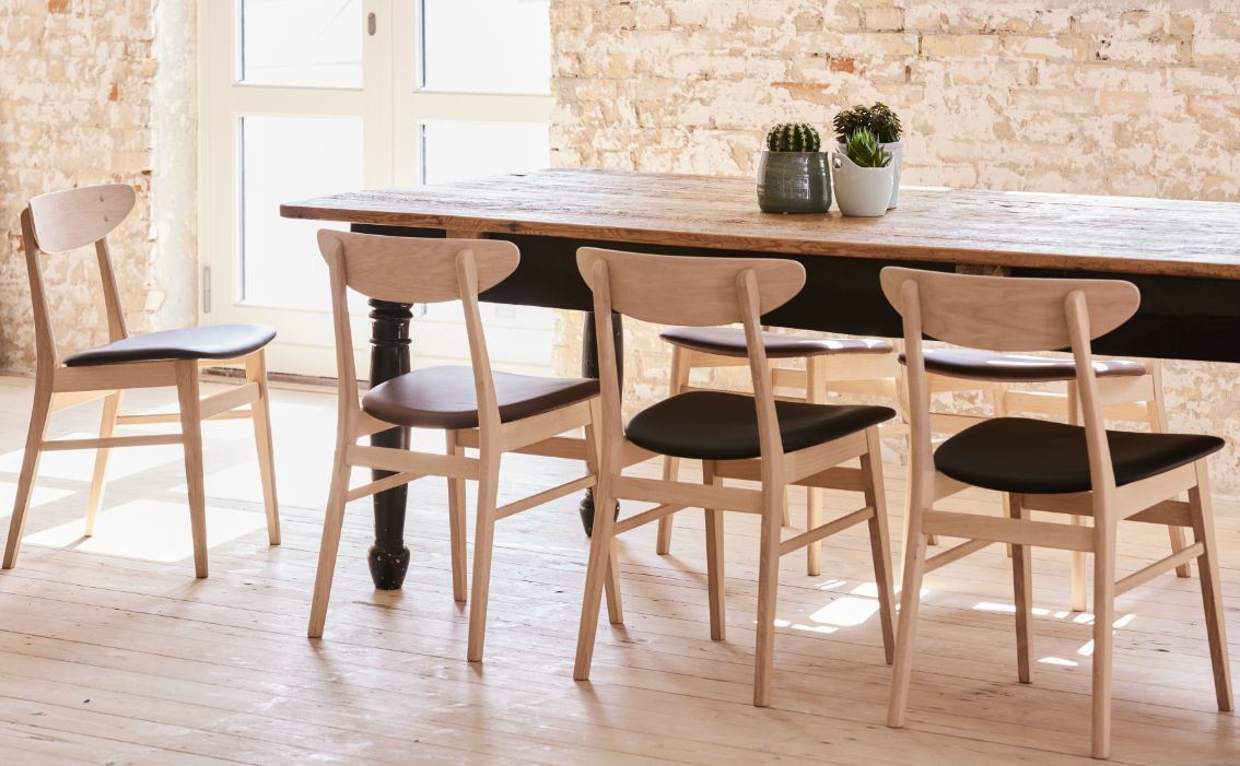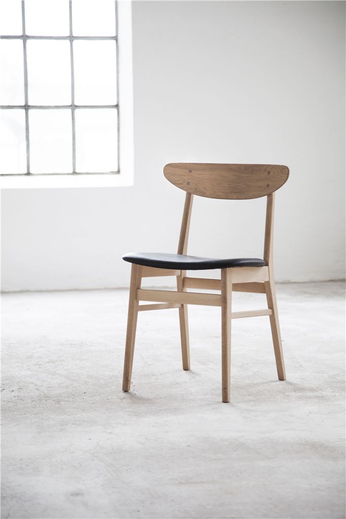 Farstrup 210r Spisebordstol - Hvidolieret Eg / Sort Læder