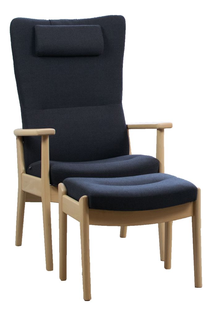Farstrup 5900 Plus Lænestol SH: 47 cm inkl. fodskammel - Eg Lysnet Lak/Capture 5201 Dark Blue/Grey