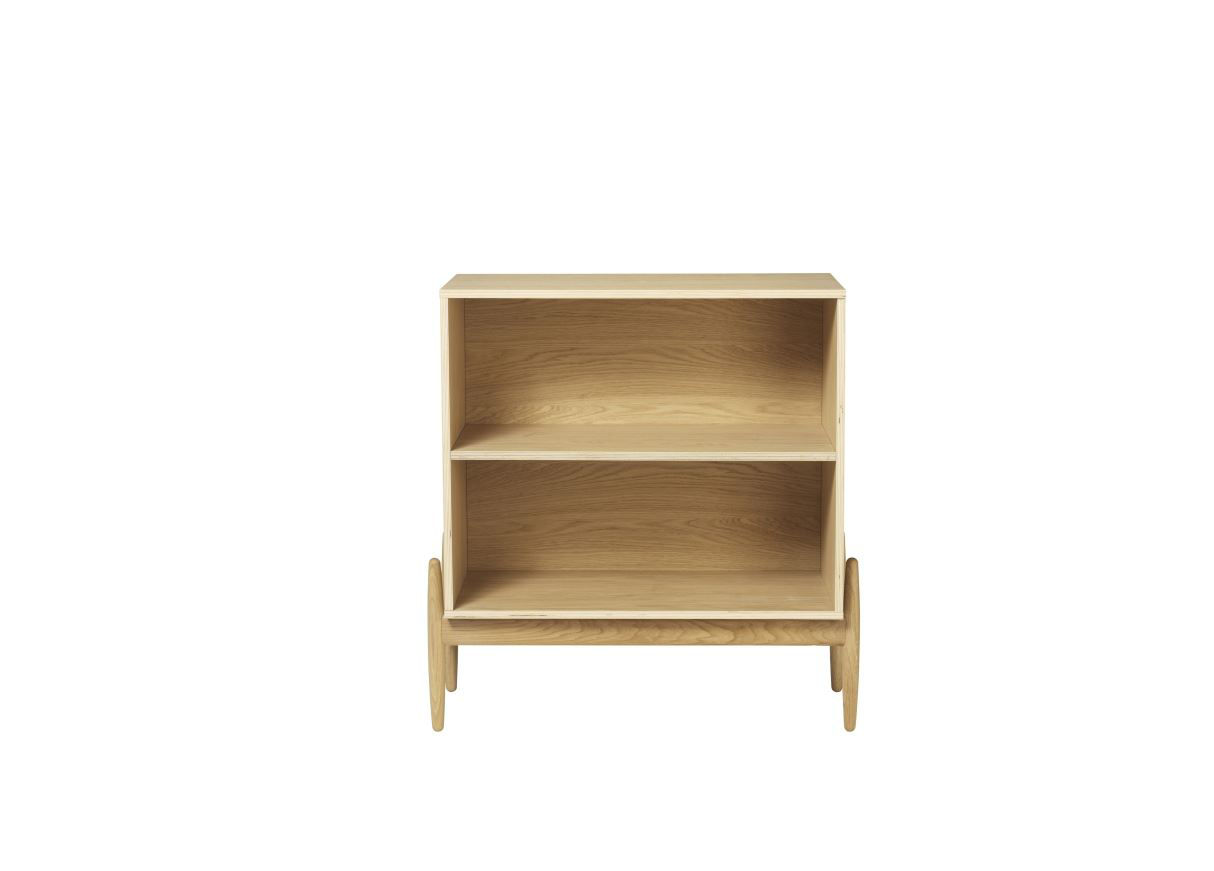 Tidsløs og stilren reol fra FDB Møbler. Reolen er praktisk og har tre gode rum, til opbevaring af diverse ting. Det stilrene design, sørger for at reolen ikke dominerer for meget i rummet, og du kan med fordel give den et vildere udtryk, ved at have en farverig vase, nogle dekorative kasser eller lignende stående.