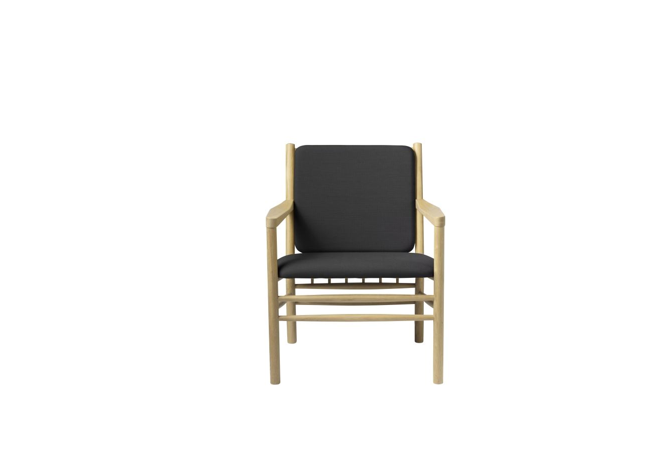 Enkelt og miljøbevidst lænestol fra FDB Møbler designet af Erik Ole Jørgensen. Lænestolen er lavet af massivt egetræ med FSC-certificeret træ fra europæiske skove og stoffet er Crisp stof, der er vævet af smukt og stærkt newzealandsk uld og mærket med både Oeko-Tex og EU Ecolabel. Designet er ikke kun miljøbevidst men matcher også med tidens trend med dens flerfarvet tekstiler. Desuden har den gode stretch kvaliteter, en enestående slidstyrke og er naturligt smudsafvisende.
