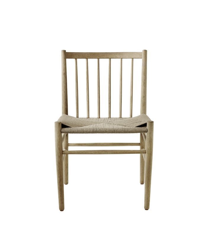 Klassisk spisebordstol fra FDB møbler designet af Jørgen Bækmark. Stolen er komfortabel og stilfuld, den kan både bruges ved bordet og som fritstående møbel. For ham var det vigtigt at komforten var i højsædet, men designet skulle også være hjørneelementet. Træets og stolens flettede sæde giver stolen et yderst naturligt og let udtryk som passer til de fleste miljøer. Den naturlige eg komplementerer stolen på bedste vis og tilføjer et moderne og nyt præg til den klassiske spisebordstol. J80 stolen fungerer perfekt som spisebordsstol, men kan også bruges på kontoret eller hvor end du påtænker at denne vil passe ind hjemme hos dig.