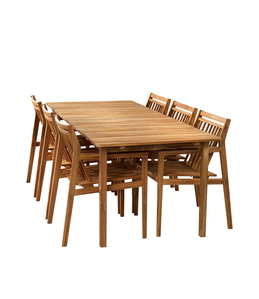 FDB Møbler Sammen Stort Havemøbelsæt | M2 Bord og 6 M1 stole - Teak FORUDBESTIL: 2026
