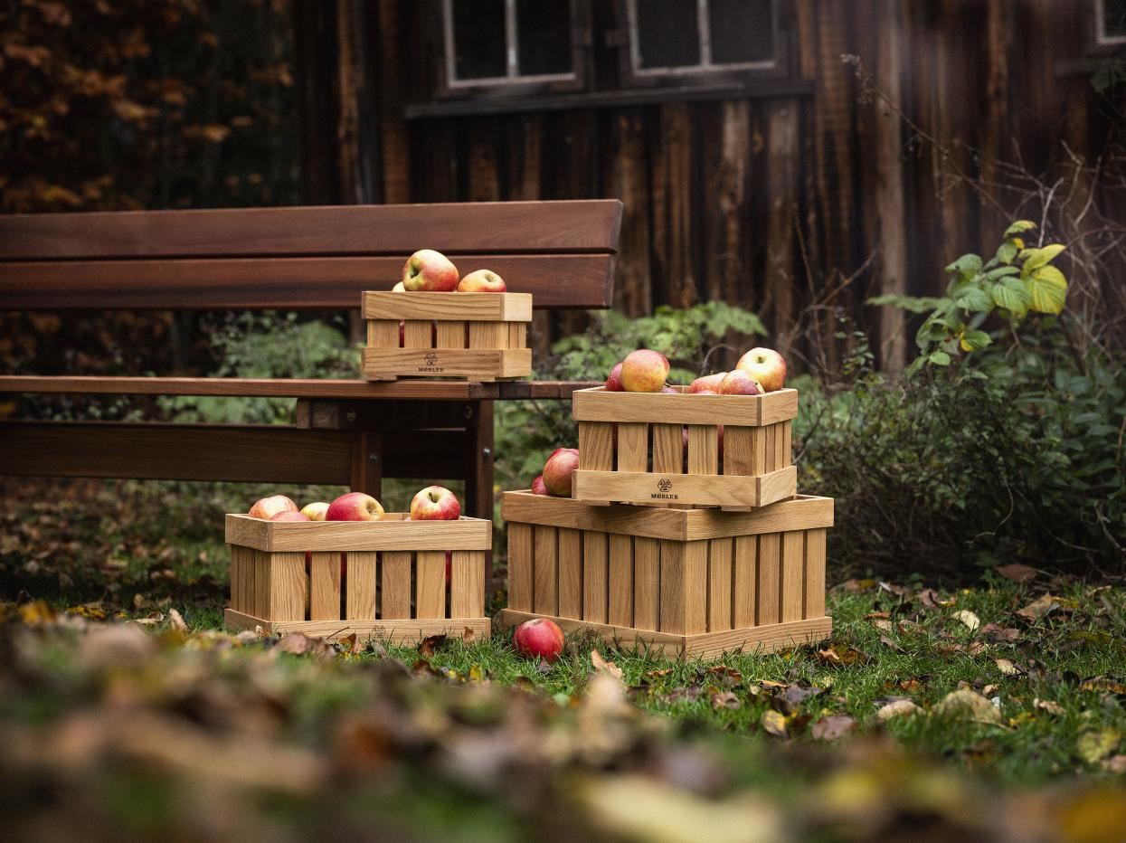 Stilrene og funktionelle æblekasser fra FDB Møbler. Kassen er fremstillet i massiv egetræ og er ideel til udendørs og indendørs brug. Kasserne hjælper dig me Se mere ...
