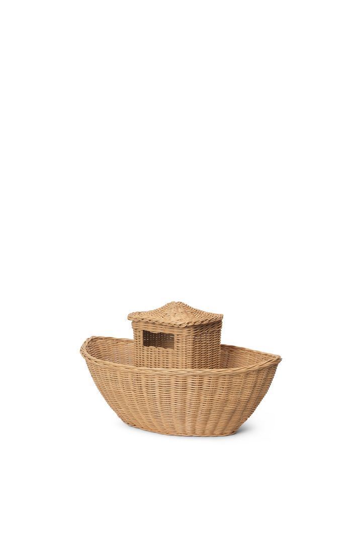 Denne flettede kurv fra Ferm Living er en sjov opbevaringskurv der indbyder til leg. Fyld arken med bamser, bøger og andre spændende ting fra børneværelset. Kurven er flettet af rattan og har en naturlig farve.