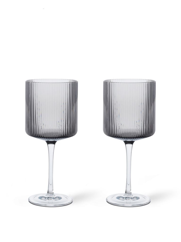 Ferm Living Ripple Red Wine Glasses H: 18,2 cm - Set of 2 - Smoked Grey