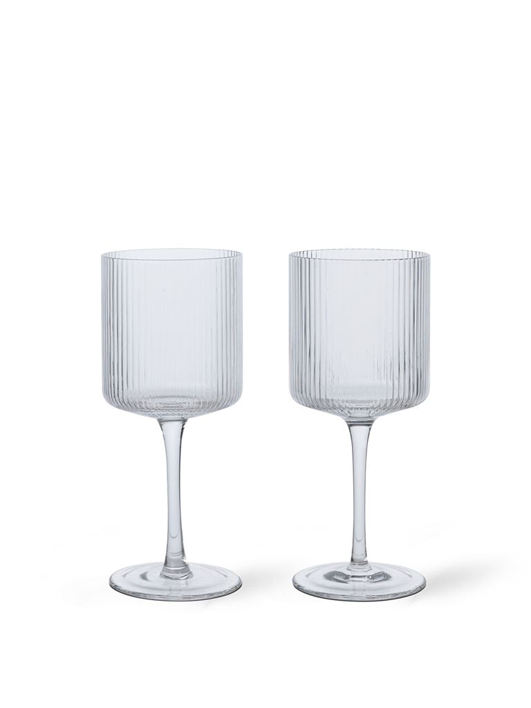 Ferm Living Ripple White Wine Glasses H: 16,8 cm - Set of 2 - Clear