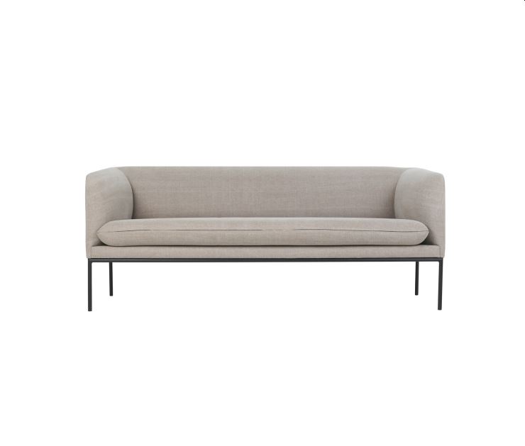 Skøn sofa fra Ferm Living. Den smukke Turn sofa er skabt med fokus på kontrasterne og har en skarp, skulpturel form der komplimentære de indre organiske kurver. Sofaen har et tidsløst og rent design med en smuk polstring og en simpel ramme i pulverlakeret metal. Denne sofa er let at kombinere med dine øvrige møbler og indretning, uanset hvilken farve du vælger.