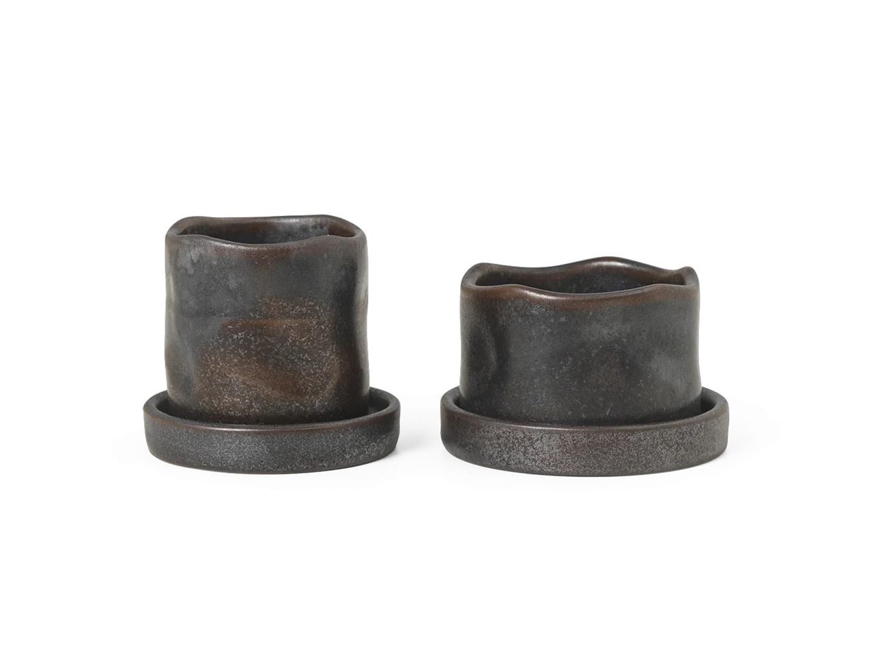 Ferm Living Uneru Mini Pots Set Of 2 - Black/Brown