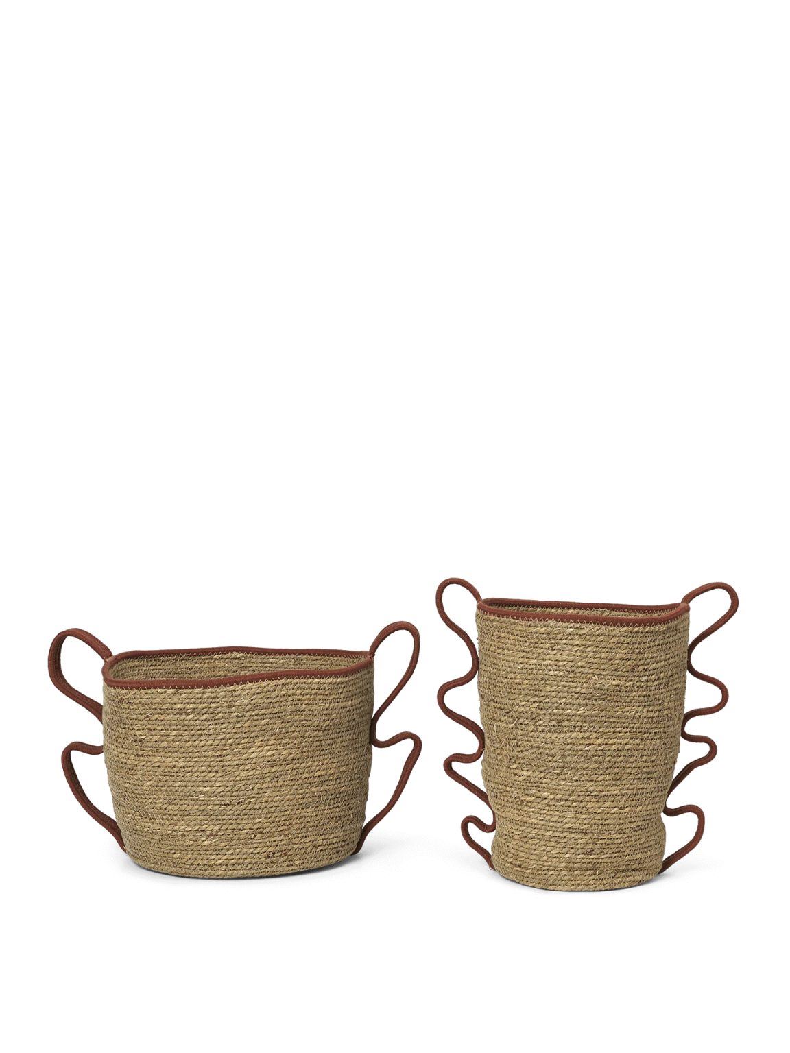 Organiser hjemmet med de smukke Verso kurve fra Ferm Living. Flyder bamserne og legetøjet rundt omkring på børneværelset? Ikke noget problem, mangler tæpper eller andre småting et sted at bo i stuen? Heller ikke noget problem med Verso kurvene. Kurvene er håndvævet og fremstillet af søgræs og har buede bomuldsgreb i en kontrastfarve. Kurvene er både smukke, dekorative og praktisk på samme tid. De kommer i et sæt á 2 styk i forskellige størrelser.