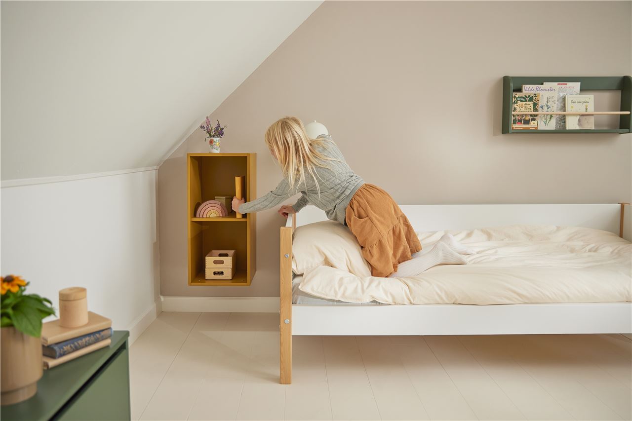Skøn bogkasse fra FLEXA. Bogkassen har to rum og kan bruges både vandret og lodret, den er fuldfarvet og ser derfor pæn ud fra alle vinkler. Med bogkassen medfølger et vægmonteringssystem, så du nemt og enkelt kan hænge den op. Bogkassen kommer i forskellige farver og du kan skabe et hav af forskellige opstillinger. Placer kassen alene, er placer flere sammen, enten i forskellige farver, eller hold det enkelt med blot én farve. Bogkassen er en god opbevaringsløsning og kan rumme både bøger og legetøj. Hæng bogkassen højt som lavt, alt efter ønske og behov. Skab det fineste børneværelset med FLEXA produkter.
