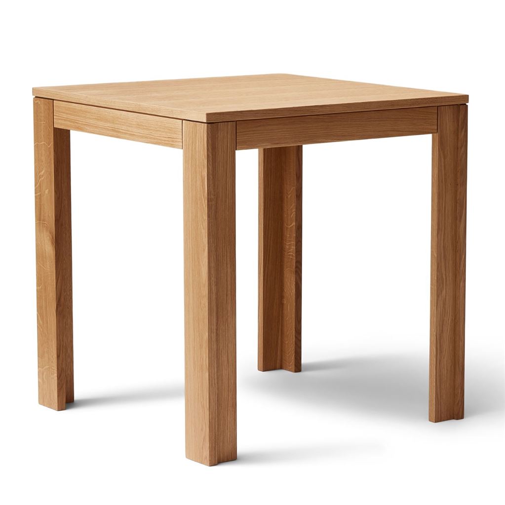 Fire stålbeslag i hjørnerne sikrer en robust konstruktion, der gør bordet fleksibelt og udvidelsesvenligt. Moduler kan tilføjes for at skabe en stærk visuel effekt. Den fine linje mellem bordplade og ben giver indtryk af, at bordet svæver, trods dets solide opbygning.